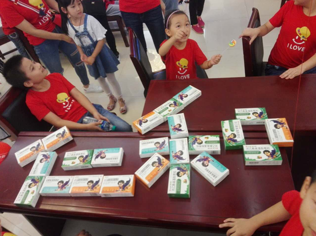 孩子们分组用“米阿卡”系列的样品盒进行折盒子比赛,大家脑洞大开,排成各种形状,还用样品盒摆出了“仁和”两个字。